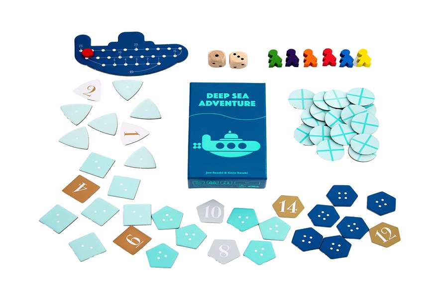 L’aventure en haute mer est un jeu compétitif au format de pochedans lequel vous explorez l’océan à la recherche de précieux trésors. Pour gagner des points, descendez dans les profondeurs de la mer et ramenez autant de jetons Trésor que possible dans le sous-marin avant que les réserves d’air ne soient épuisées ! Un succès mondial enfin en italien, avec les dés de la variante Propulsion également !